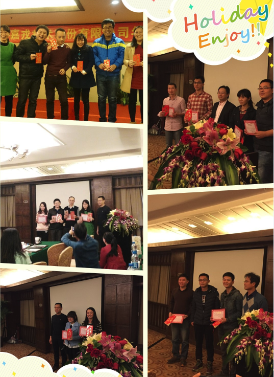 上午九點(diǎn),在董事長(zhǎng)蔣總的新年致辭中,嘉戎2015年年終總結(jié)會(huì)議拉開(kāi)了序幕。在接下來(lái)的會(huì)議中,由各部門(mén)主管及優(yōu)秀員工代表依次上臺(tái)發(fā)言,做2015工作總結(jié)、2016年工作規(guī)劃及工作感悟分享。接下來(lái),由公共支持部揭曉公司2015年度優(yōu)秀員工獎(jiǎng)、優(yōu)秀進(jìn)步獎(jiǎng)、飛鷹獎(jiǎng),及星級(jí)員工的獲獎(jiǎng)員工,并由公司董事長(zhǎng)、總經(jīng)理、常務(wù)副總給獲獎(jiǎng)員工頒發(fā)獎(jiǎng)品和獎(jiǎng)狀,感謝大家這一年來(lái)辛勤付出,并肯定了大家這一年來(lái)的工作成績(jī),公司全體員工也為獲獎(jiǎng)的優(yōu)秀員工獻(xiàn)上了最真誠(chéng)的祝福和最熱烈的掌聲。